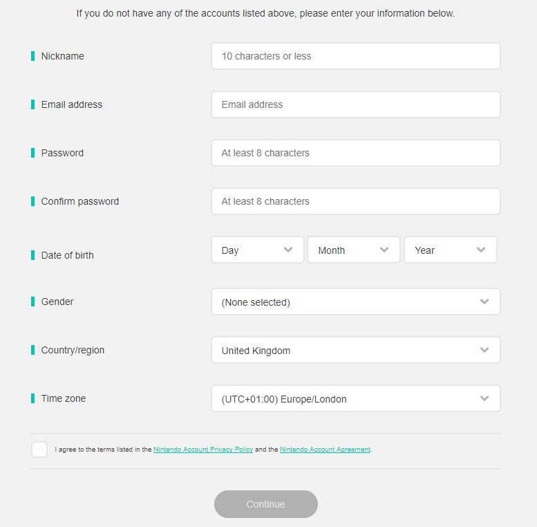 First, you need to create a new account for your desired eShop region. The easiest way to do this in a web browser by going to the My Nintendo account setup page, then click 'get started' and create a new account.