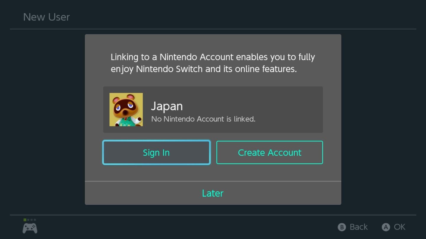 With the account created, you have the option to link it to a Nintendo Account. Use this opportunity to log into the new account you just created online.